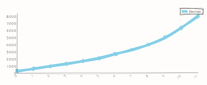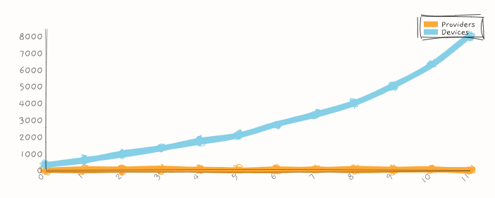 Now people own wearables like FitBits and Apple Watches. People use do-it-yourself services like 23andMe and uBiome. And in the not-too-distant future, the trend of ever-miniaturizing lab devices will enable advanced protocols at home. So now we have an additional line, reflecting the quantity of the patient's medical data from their own devices and services: