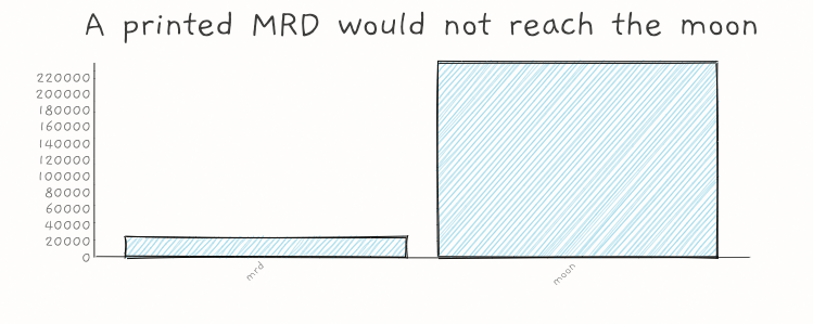 So for a 120 year old in 2140, their printed MRD would not reach the moon. Though it may make it halfway there.