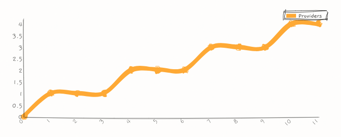 If you were to plot the cumulative medical data storage use for the average American patient, it would look something like the abstract chart below, going up in small increments during each visit to the doctor: