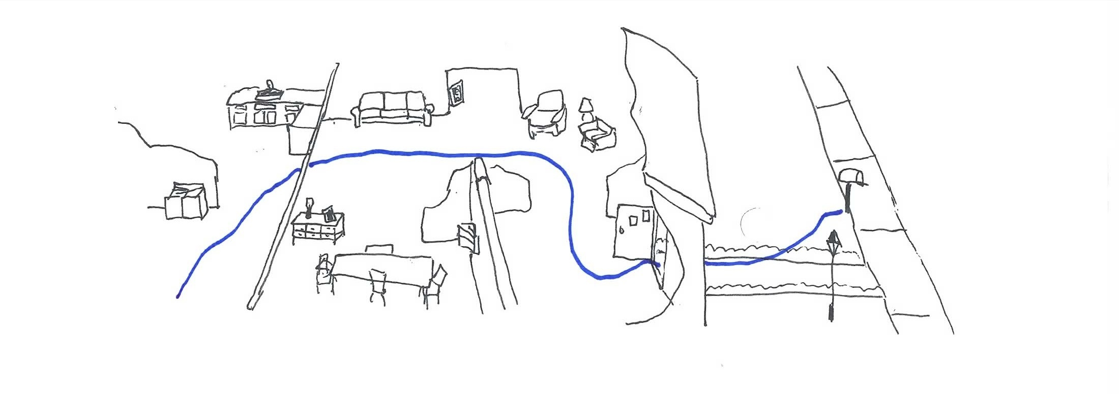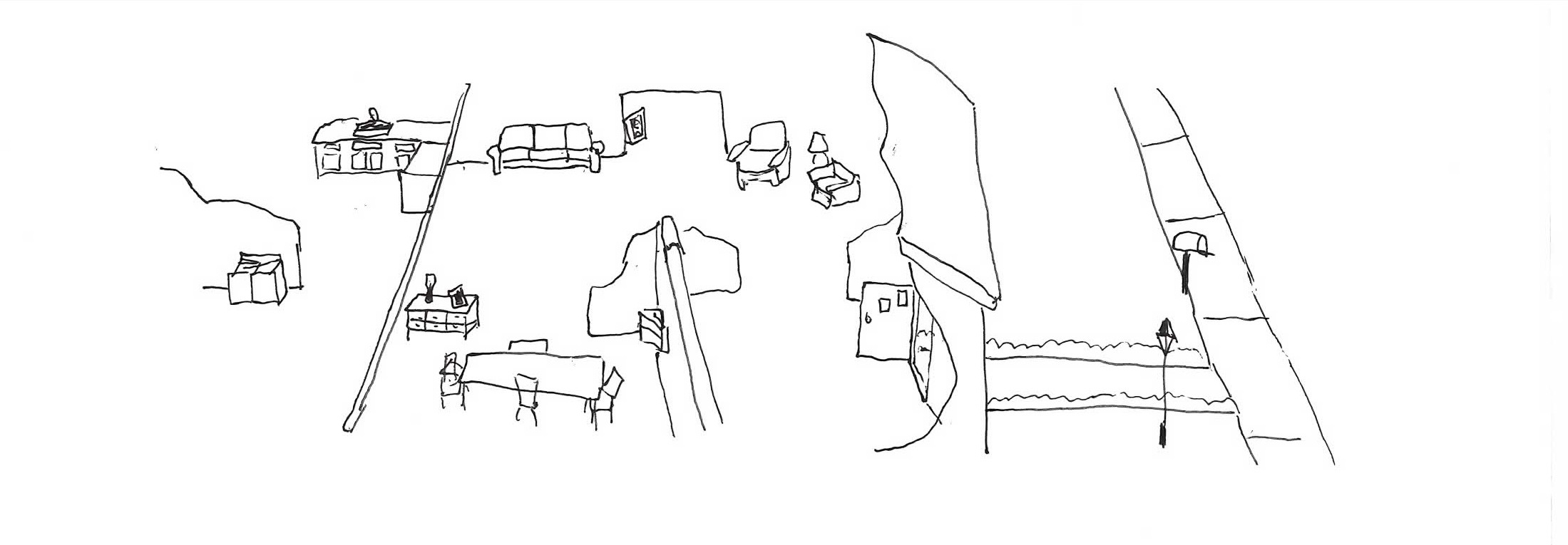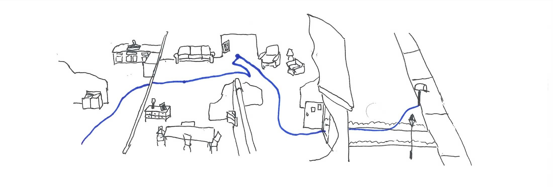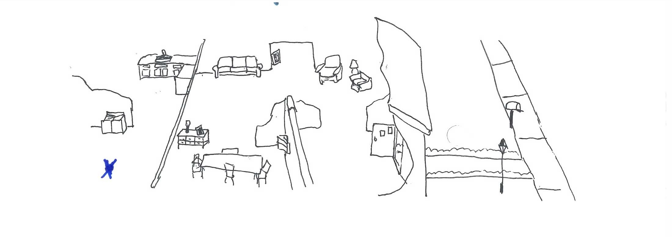 I'm going to redraw the strip above to show you more of the story. More of what actually happened. Because I suck at drawing, my first step will be to simplify the strip a bit. Here is my simplified Family Circus house: