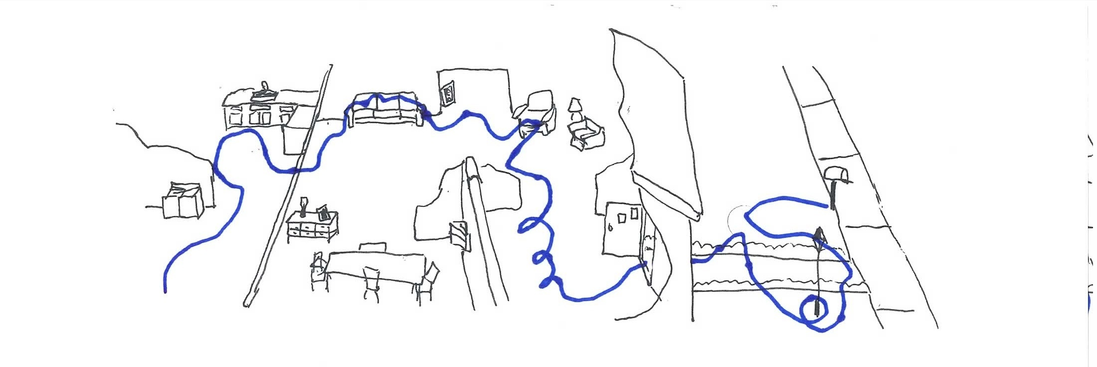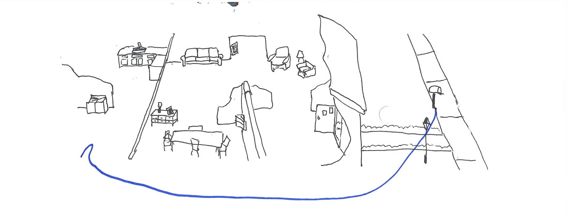 And there's a universe where he took the same winding route as in the original, except without the trip to the dining room: