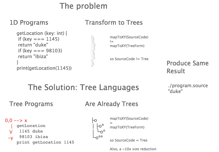 Figure 1. This Visual Abstract explains the core idea of the paper. This diagram is also the output of a program written in a new Tree Language called Flow.