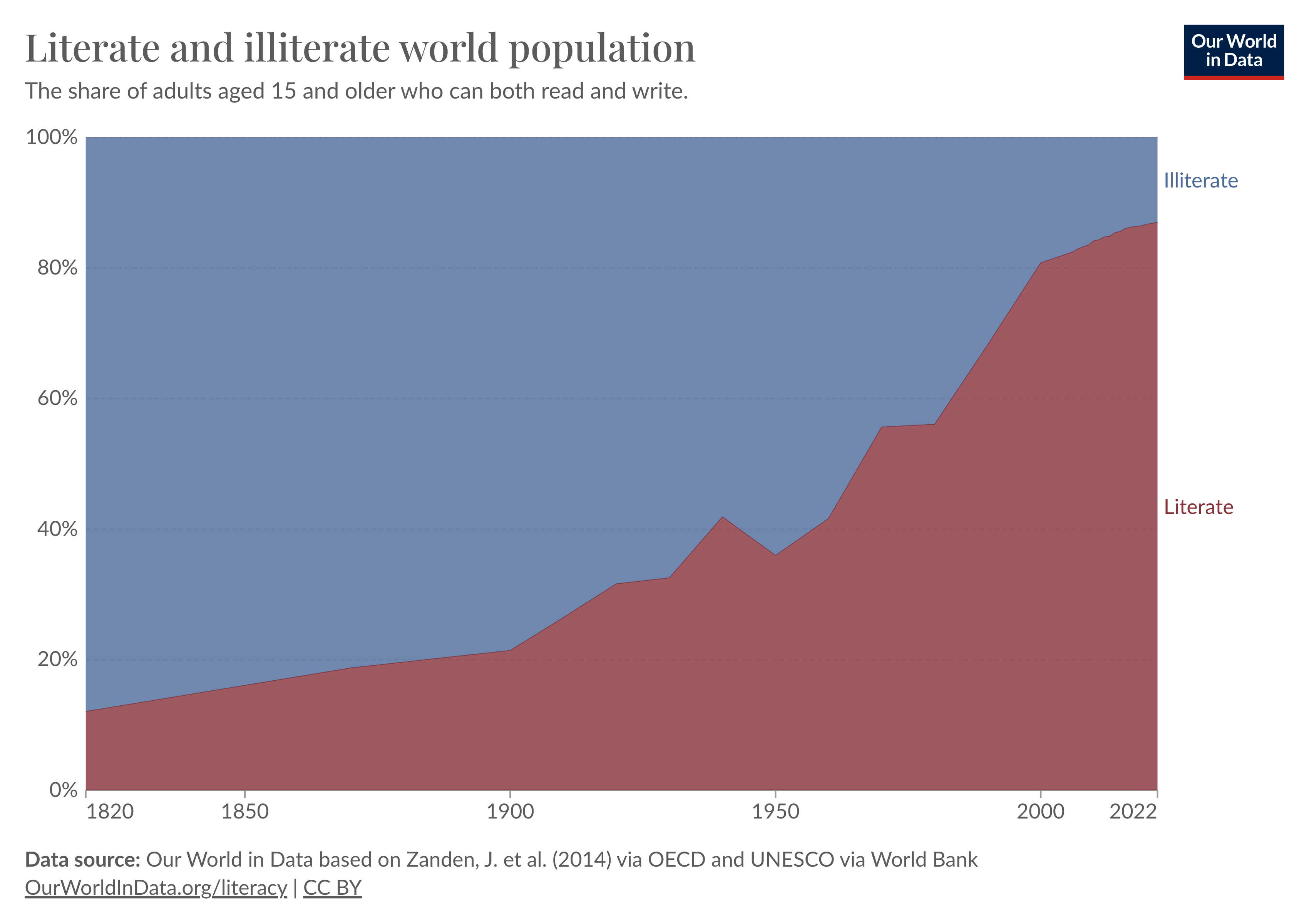 January 12, 2024 โ For decades I had a bet that worked in good times and bad: time you invest in word skills easily pays for itself via increased value you can provide to society. If the tide went out for me I'd pick up a book on a new programming language so that when the tide came back in I'd be better equipped to contribute more. I also thought that the more society invested in words, the better off society would be. New words and word techniques from scientific research helped us invent new technology and cure disease. Improvements in words led to better legal and commerce and diplomatic systems that led to more justice and prosperity for more people. My read on history is that it was words that led to the start of civilization, words were our present, and words were our future. Words were the safe bet.