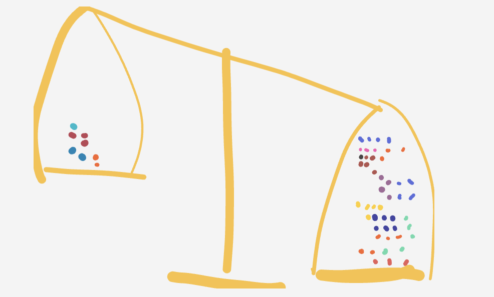 Each line is a particle. Each dot is a atom. Particles lets you easily compare programs and see which one is simpler (less heavy!).